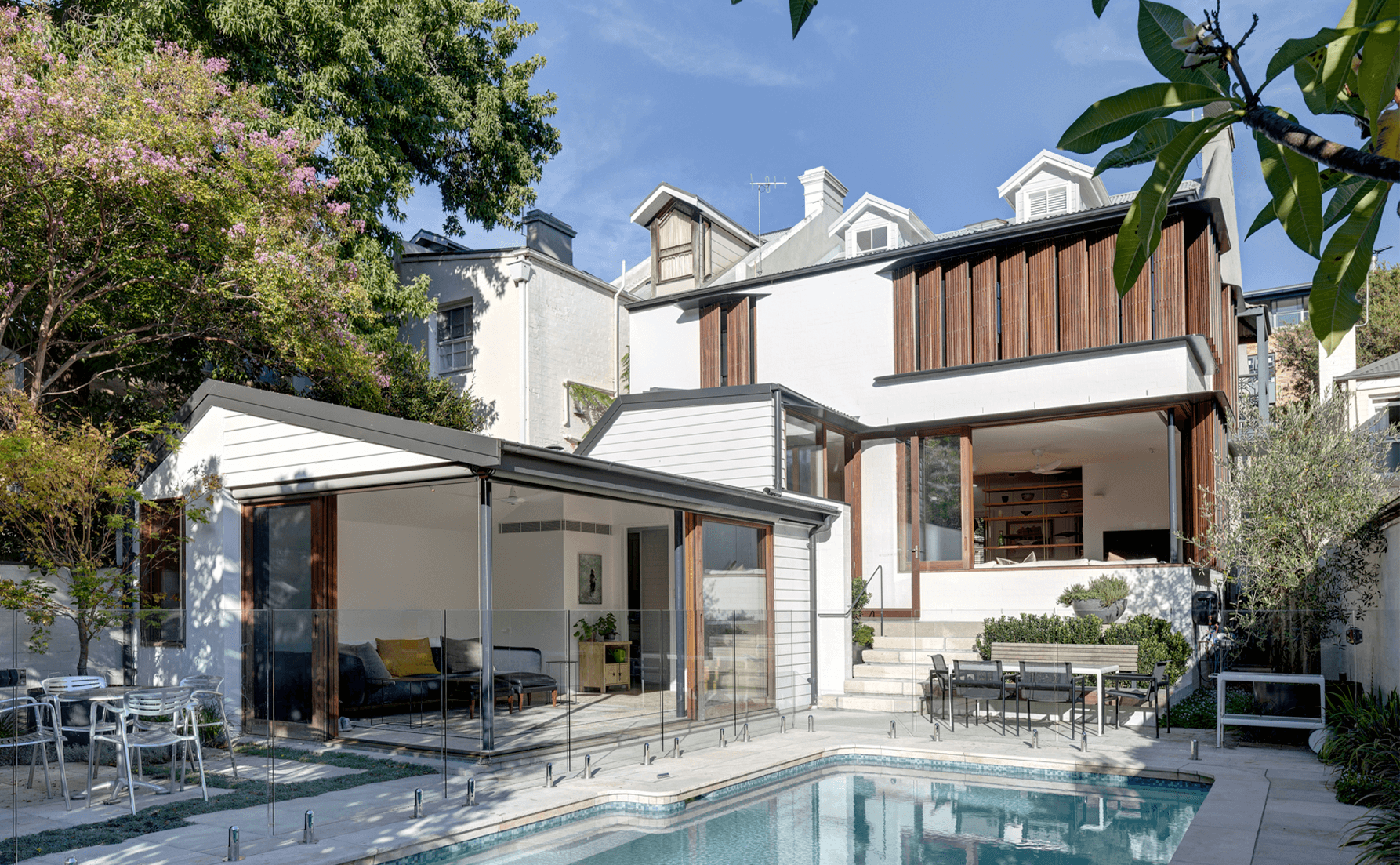 Sydney terraces are typically long and narrow, with steep staircases, limited natural light and compartmentalised rooms. Many also include later additions that disrupt spatial flow.