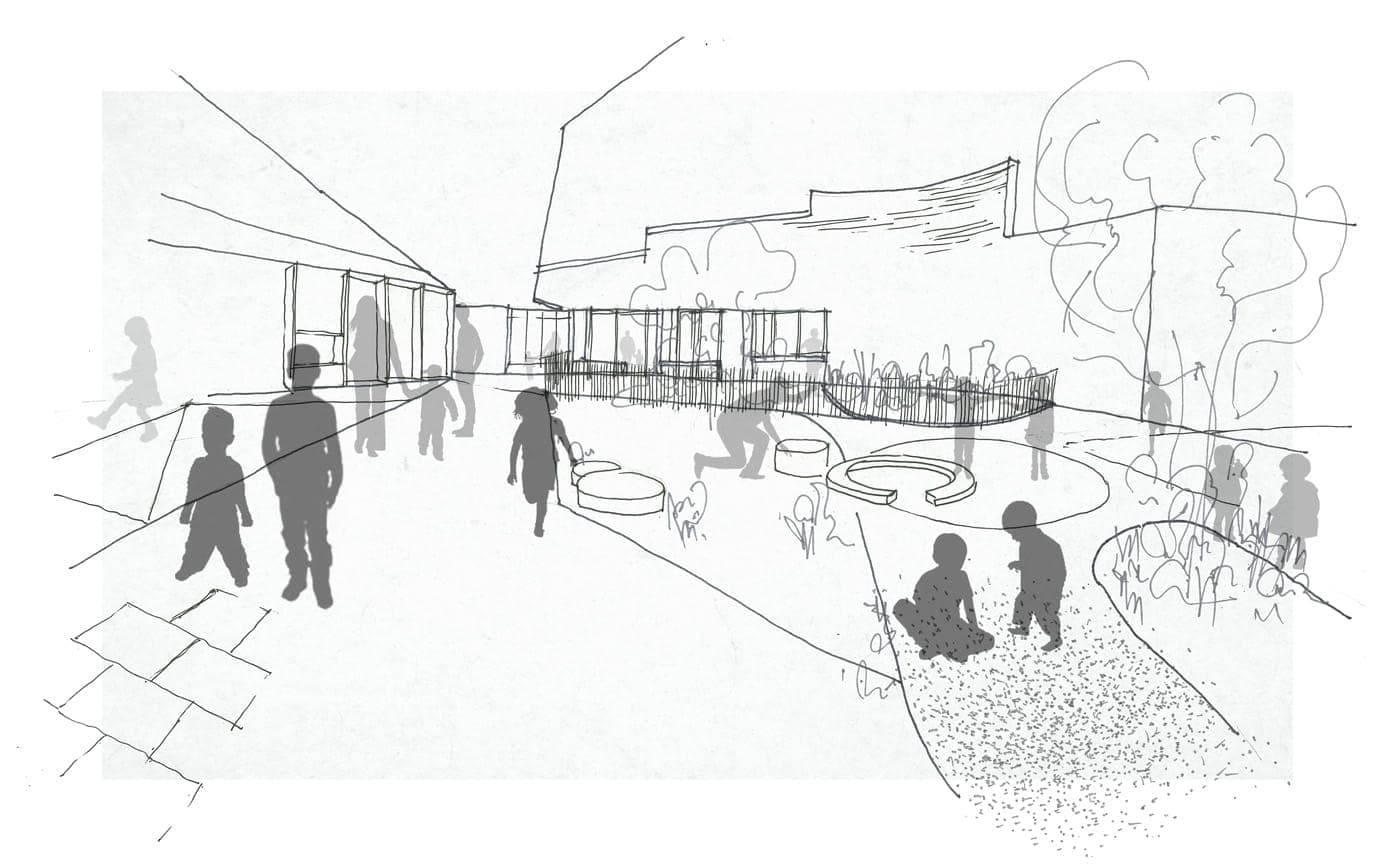 The building and landscaped areas are universally accessible. Open spaces connect to the land – what the site was before and how these qualities can be re-conceived spatially and materially to reinforce play and learning.