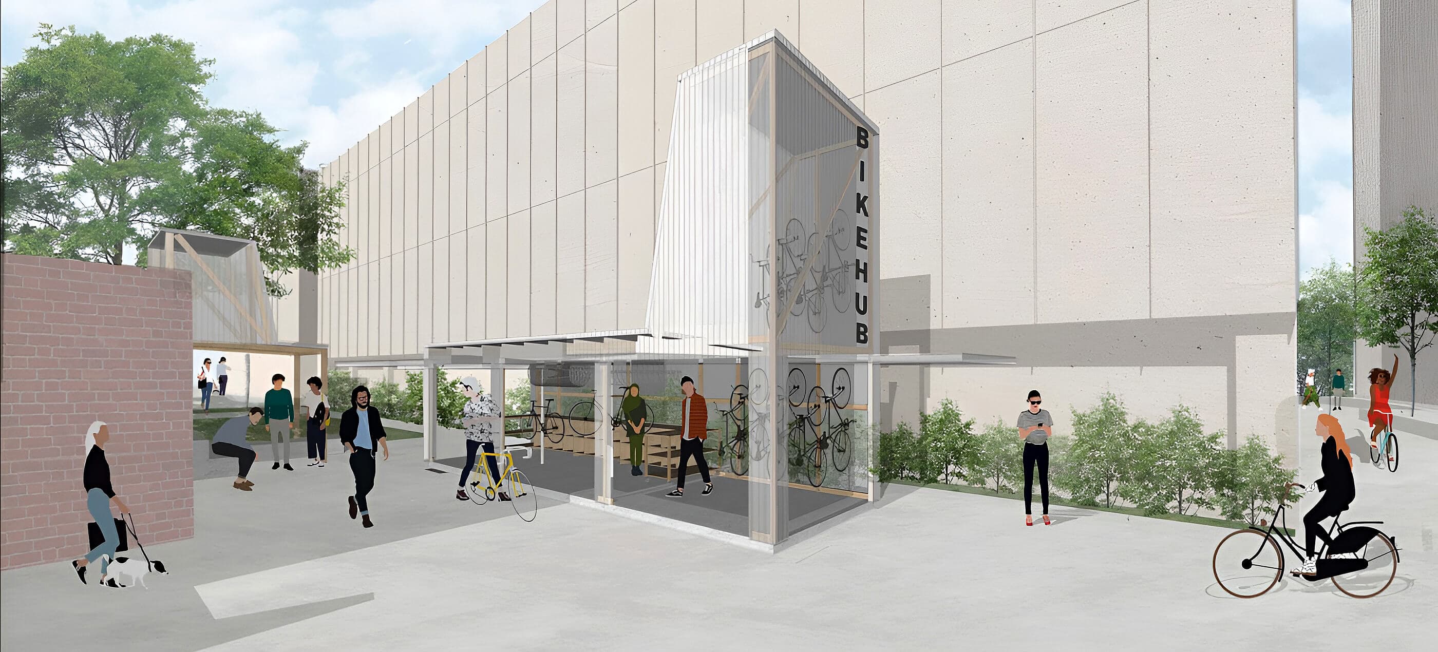 The Bike Workshop Facility is designed to respond to the diverse and changing needs of cyclists. The hub caters for everyone from self-service repairs by advanced riders through to education workshops for first-timers.