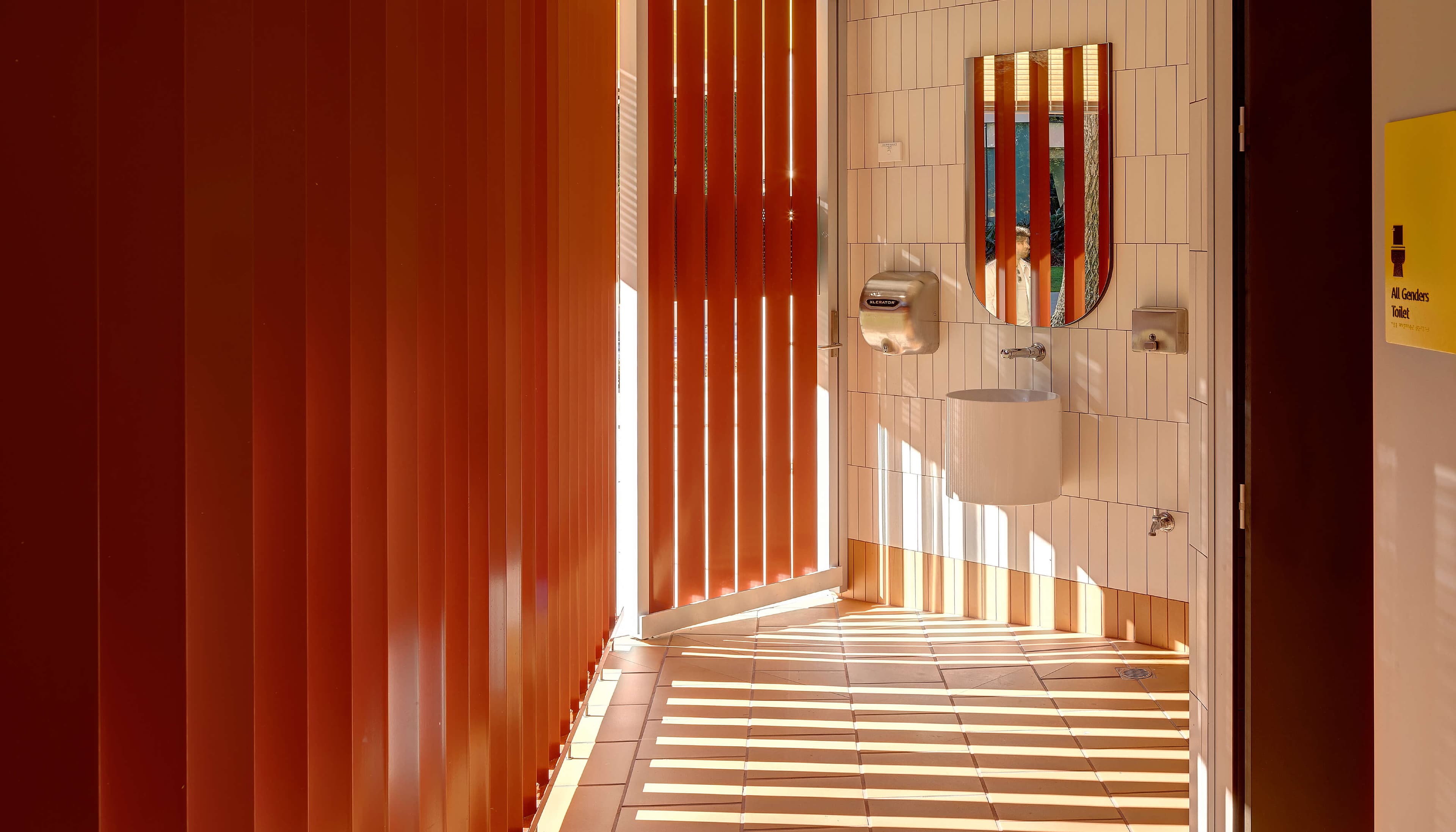 Our role was to assist in review of the masterplan, and design and delivery of three key elements – design of a new spectator grandstand overlooking the main sports field, design of upgrades to the sports amenities pavilion, and design of a new social hub for the precinct.